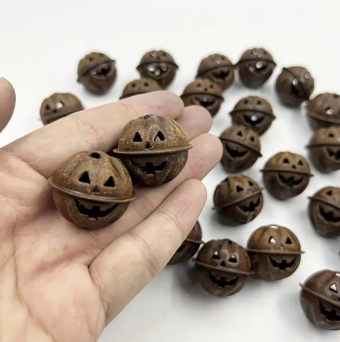 Lindo Guizo em formato de abóbora de Halloween com 3cm em metal rústico enferrujado.